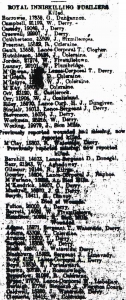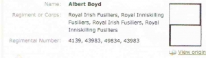 He had a few different army numbers for some reason, moving back and forward between Royal Irish Fusiliers and Royal Inniskillin Fusiliers