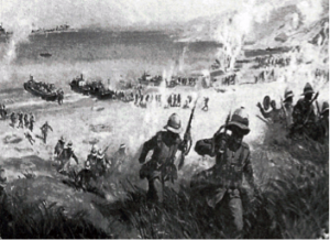 March 1915 : Sailed, going via Egypt, and landed at Cape Helles, Gallipoli, on 25 April 1915.